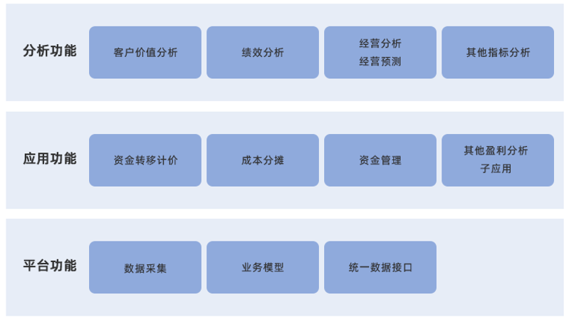 智能盈利分析平台是在基于价值创造的经营转型,未来智慧财务的管理趋势下,打造的一款实用、标准、兼容、轻量、高性价比的产品,主要面向中小型金融企业,实现准确高效、准实时的各类成本、收益计量,进而支撑多维度的财务与经营分析的盈利分析平台。